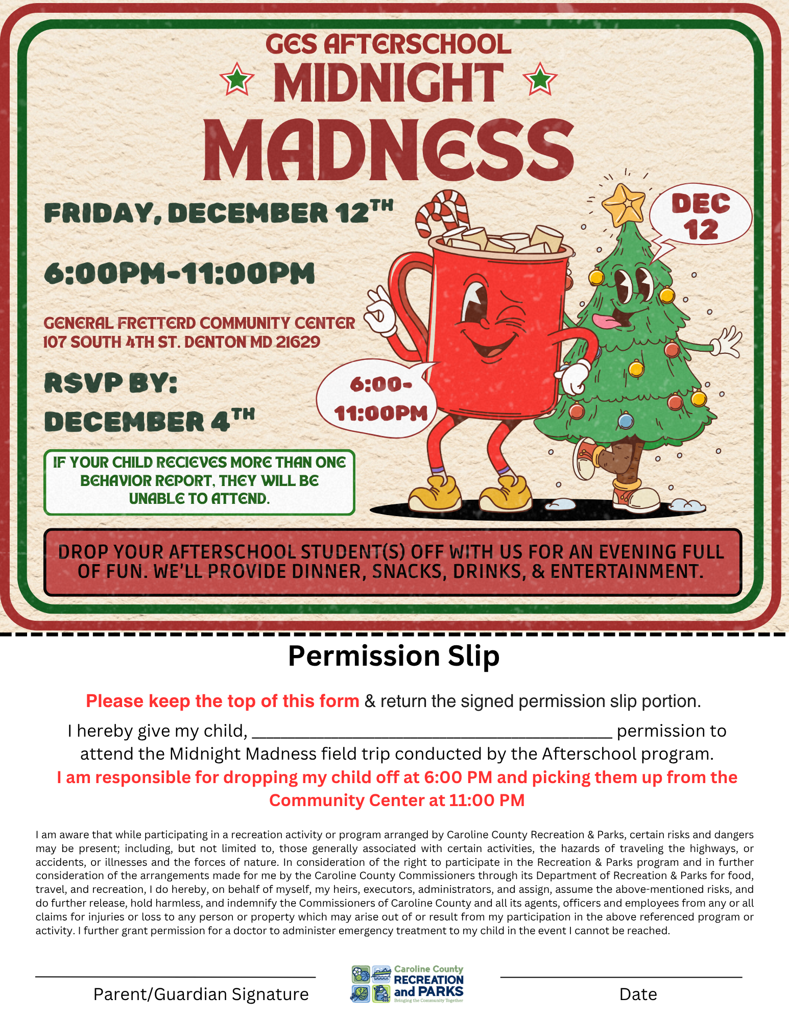 12/12/25: GES Midnight Madness Event English Flyer | Spanish Flyer
