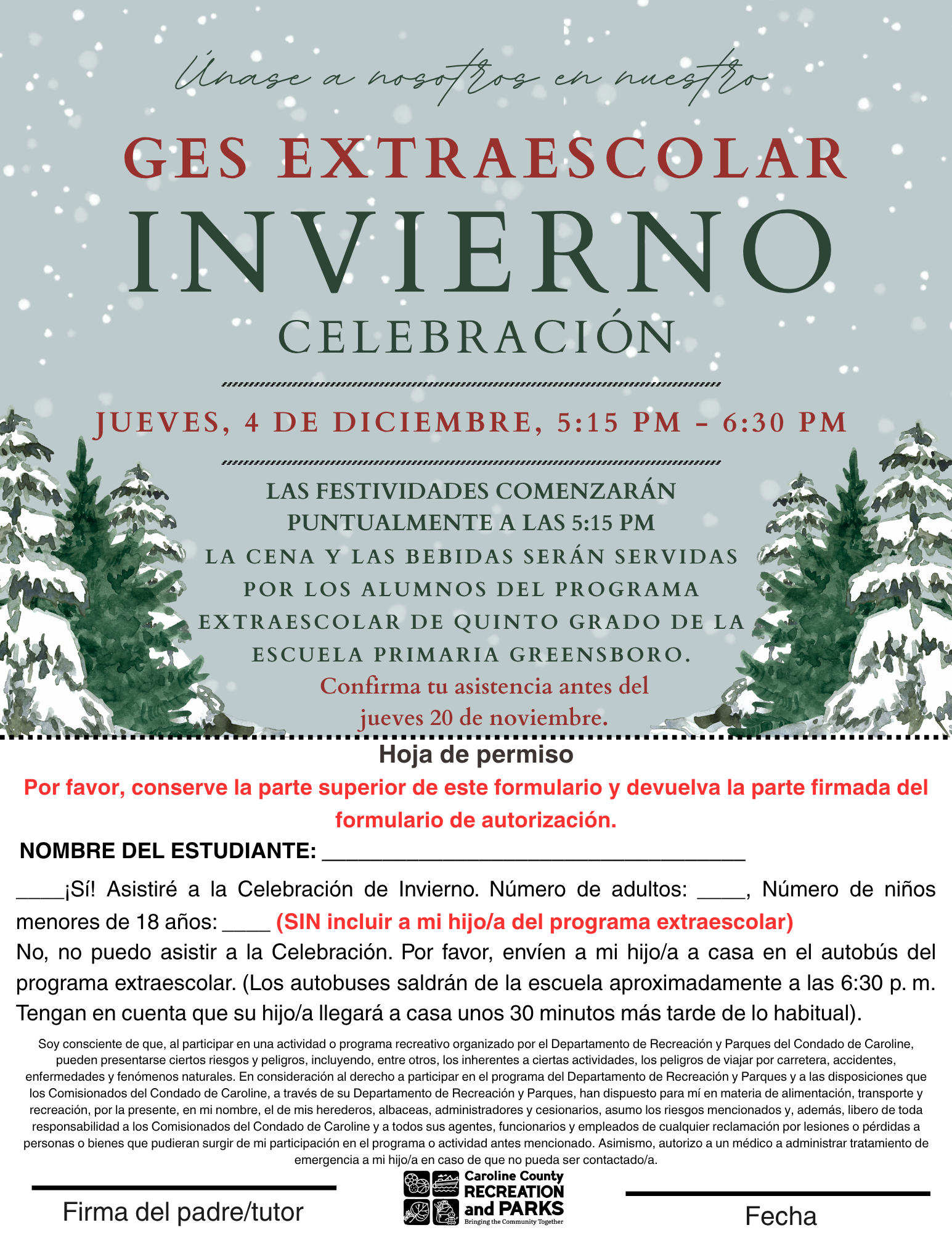 12/4/25: GES Family Night: Winter Celebration - 5:15pm - 6:30pm English Flyer | Spanish Flyer