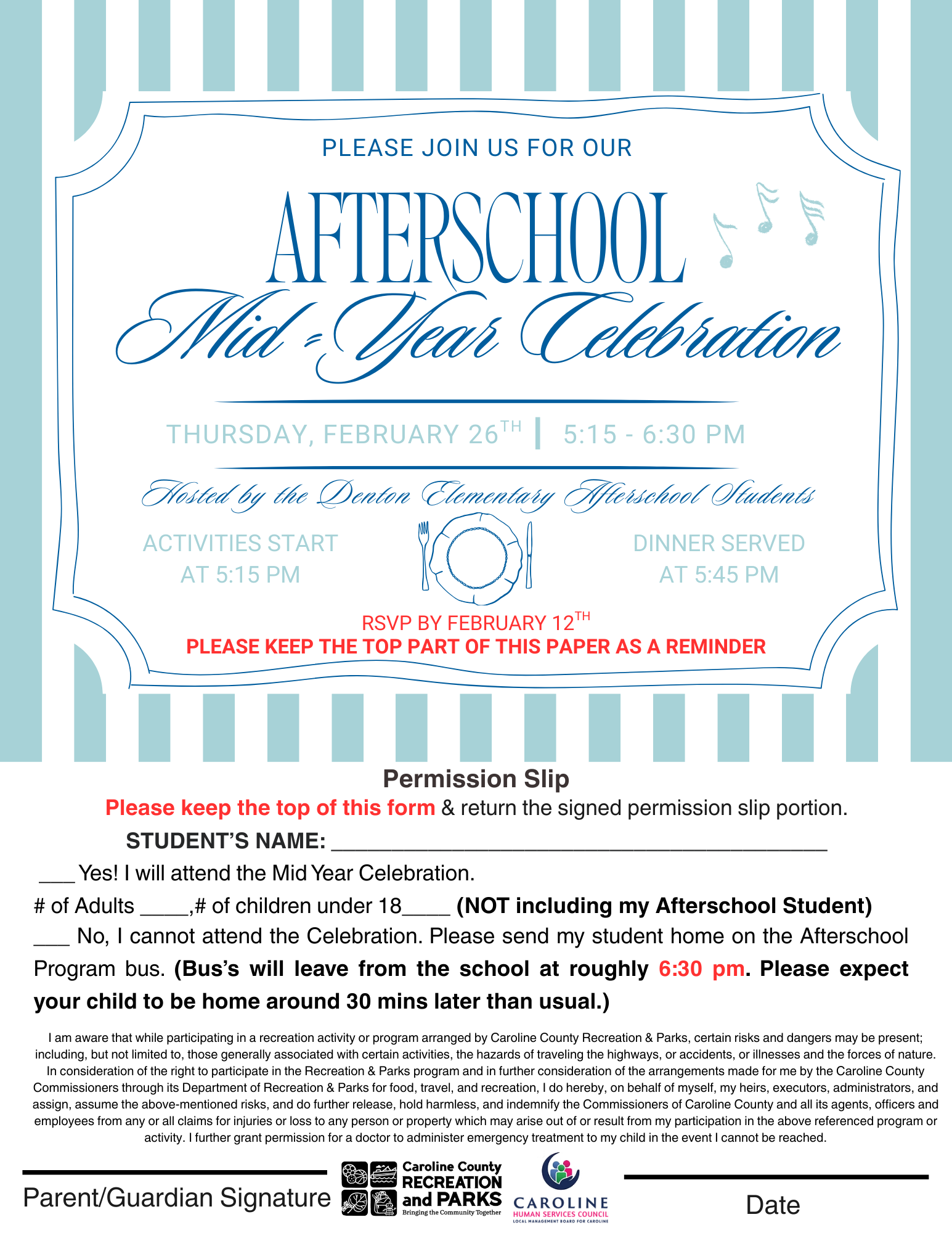 2/26/26: DES Family Night: Mid-Year Celebration - 5:15pm - 6:30pm English Flyer | Spanish Flyer